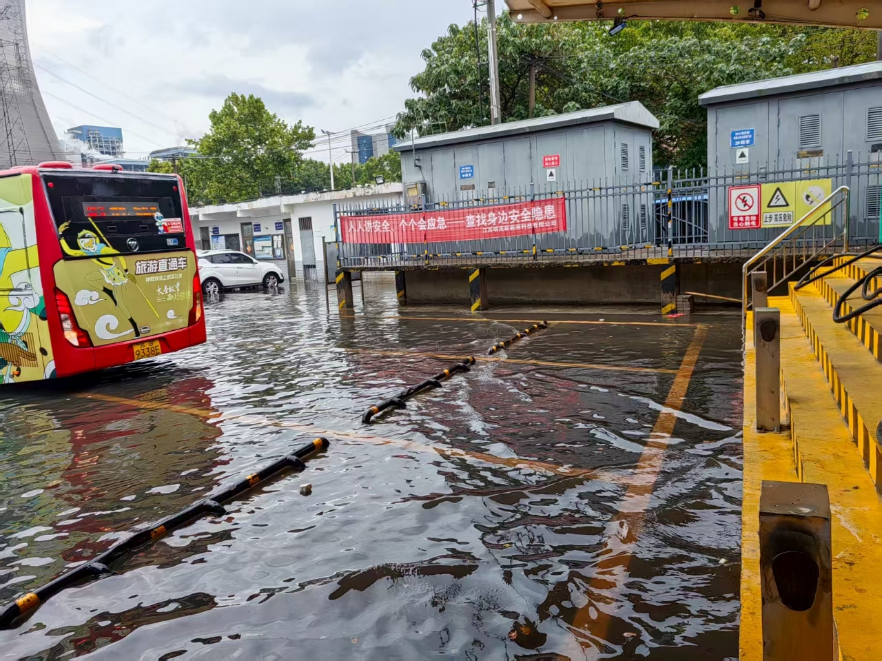 8月27日上午,受強降雨天氣影響,西門充電站出現(xiàn)嚴重積水,對公交車輛能源補給工作帶來較大威脅。面對突發(fā)情況,明茂公司西區(qū)班組迅速響應(yīng),立即啟動應(yīng)急預(yù)案,有序開展應(yīng)急處置工作,全力保障公交車輛充電安全、正常運行。