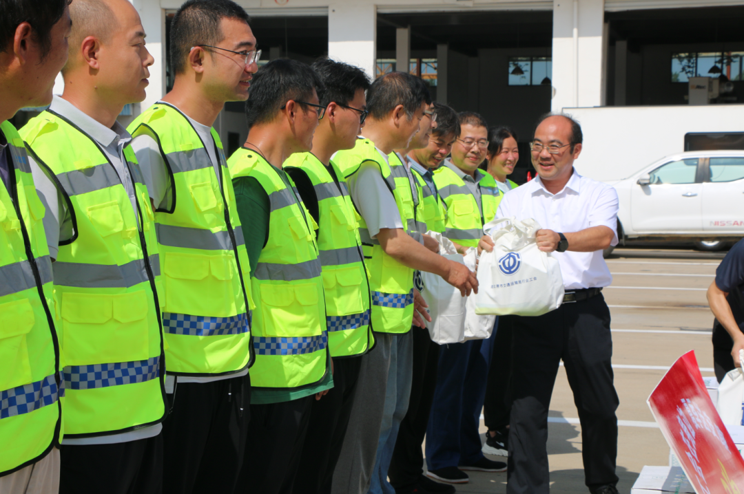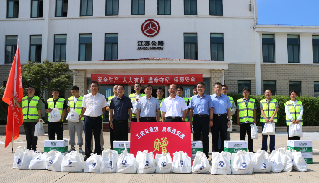 8月3日,市交通運(yùn)輸局黨委書記、局長(zhǎng)毛善通一行赴集團(tuán)豐達(dá)公司公路工程養(yǎng)護(hù)應(yīng)急處置中心開展“夏季送安康”活動(dòng),為一線工作人員送來(lái)了防暑降溫用品,讓他們?cè)谘籽紫娜绽锔惺艿搅艘黄鍥?。交通控股集團(tuán)黨委書記、董事長(zhǎng)仲偉濤,黨委副書記、工會(huì)主席陳金師陪同慰問(wèn)。