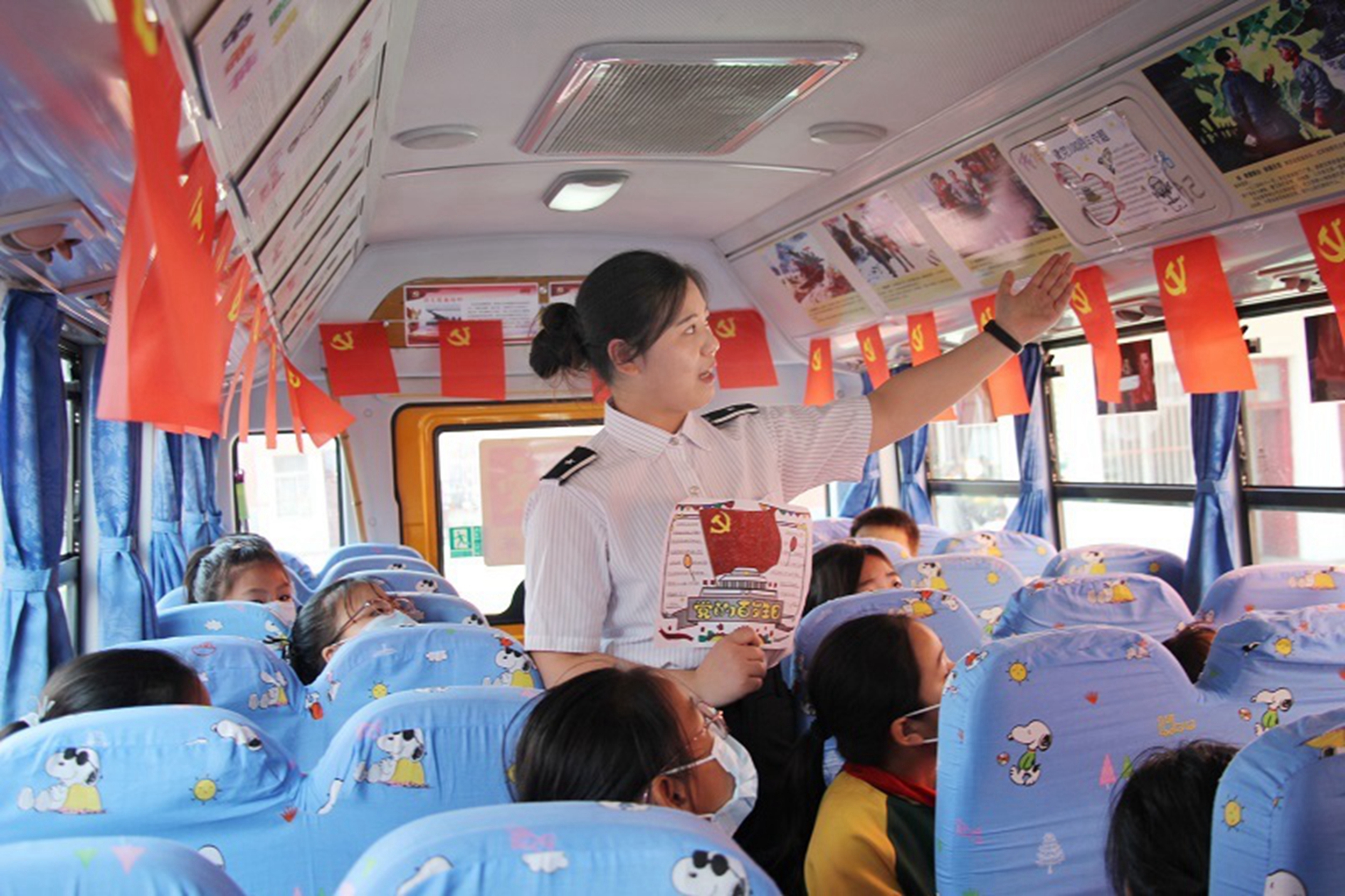 她平時很注重與學生家長、學校的溝通和交流。不定期到鄉(xiāng)鎮(zhèn)學校與學生家長、老師進行面對面溝通交流,并耐心解答大家的問詢,為校車后續(xù)工作開展提供強有力的支持。每逢傳統(tǒng)文化節(jié)日,她都積極組織照管員開展各類有益活動,如開展“青蘋果”法治小課堂、組織傳統(tǒng)文化小繪畫、開展校車車廂紅色主題黨史知識學習、安全知識學習等,讓學生們在乘車過程中也能學習拓展到新知識,也讓家長們喜聞樂見。