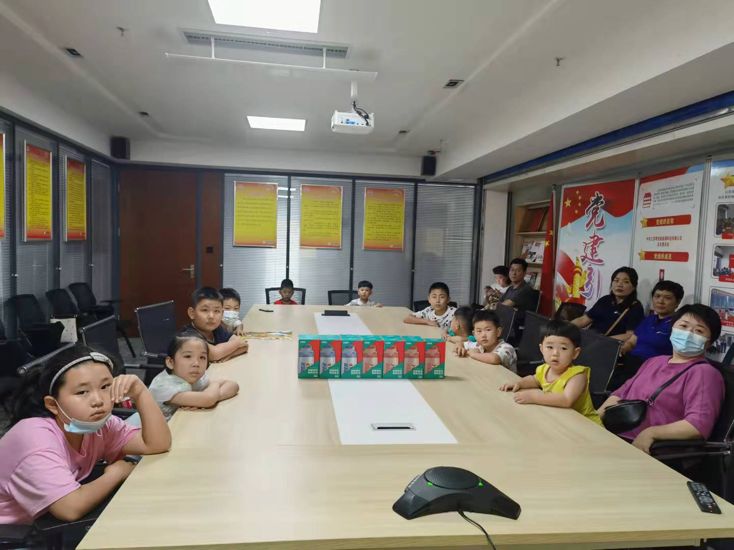 歷史是最好的教科書。在明茂公司黨員活動(dòng)室,支部書記沈金虎用淺顯易懂的語言為孩子們生動(dòng)講述了黨史故事《小蘿卜頭》,帶領(lǐng)孩子們認(rèn)識(shí)黨的百年歷史中涌現(xiàn)出的先進(jìn)人物,深情禮贊建黨百年來取得的豐功偉績(jī),讓孩子們?cè)隈雎犞芯拺迅锩攘遥惺芄伯a(chǎn)黨員吃苦耐勞、無私奉獻(xiàn)的精神。為幫助小朋友們了解更多的黨史知識(shí),讓紅色基因、革命薪火代代傳承,活動(dòng)還組織小朋友們觀看了黨史動(dòng)畫片《小兵楊西來》,引導(dǎo)他們厚植愛黨愛國(guó)情懷,爭(zhēng)做新時(shí)代的接班人。