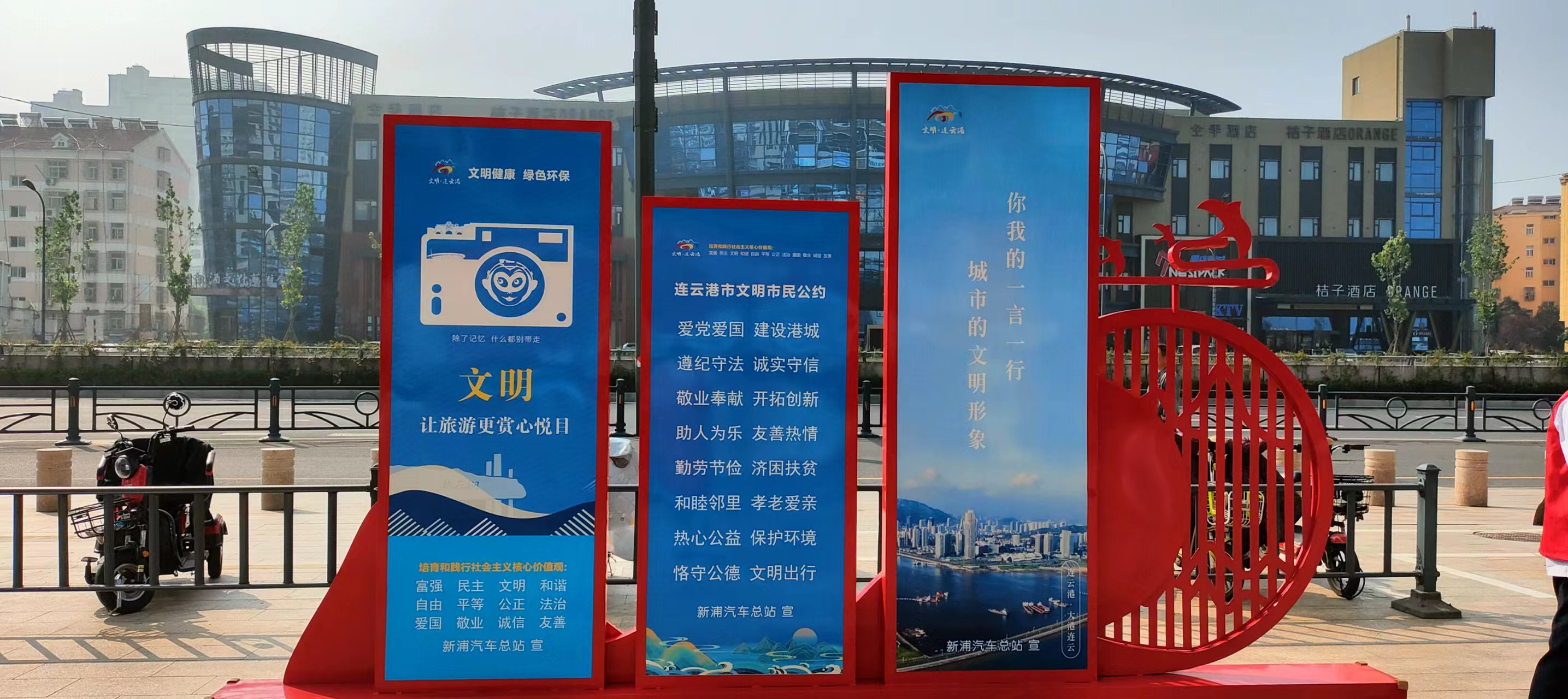 創(chuàng)文氛圍有“料子”。汽車公司充分利用電子屏、宣傳欄、展板、海報等載體多方位、深層次開展創(chuàng)文氛圍營造,及時更新了2022年最新版公益廣告。在新浦汽車總站和蘇欣客運站站前廣場新增兩處“社會主義核心價值觀”景觀小品;排查市區(qū)各客運站點現(xiàn)有公益廣告破損、褪色情況,規(guī)劃600平方站內(nèi)外公益廣告,更新180余處;設(shè)置遵德守禮指示牌和文明提示標(biāo)語50個、禁煙標(biāo)志40余張;利用電子屏播放新版公益廣告100余條。
