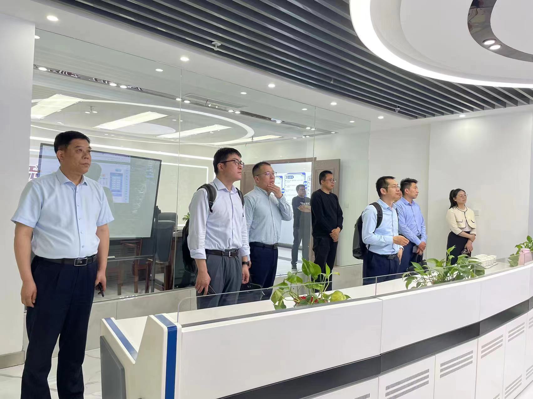 交流中,宣智淵一行先后參觀了智慧交通展廳、智慧停車指揮中心等重點(diǎn)板塊,詳細(xì)了解智慧公司發(fā)展歷程、主要產(chǎn)品和技術(shù)特色及獲得的榮譽(yù)專利等情況,認(rèn)真觀看了“智慧公交大腦”“兩客一?!焙椭腔弁\嚨染€上管理系統(tǒng),與會人員就相關(guān)情況進(jìn)行深入交流。