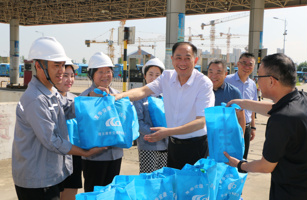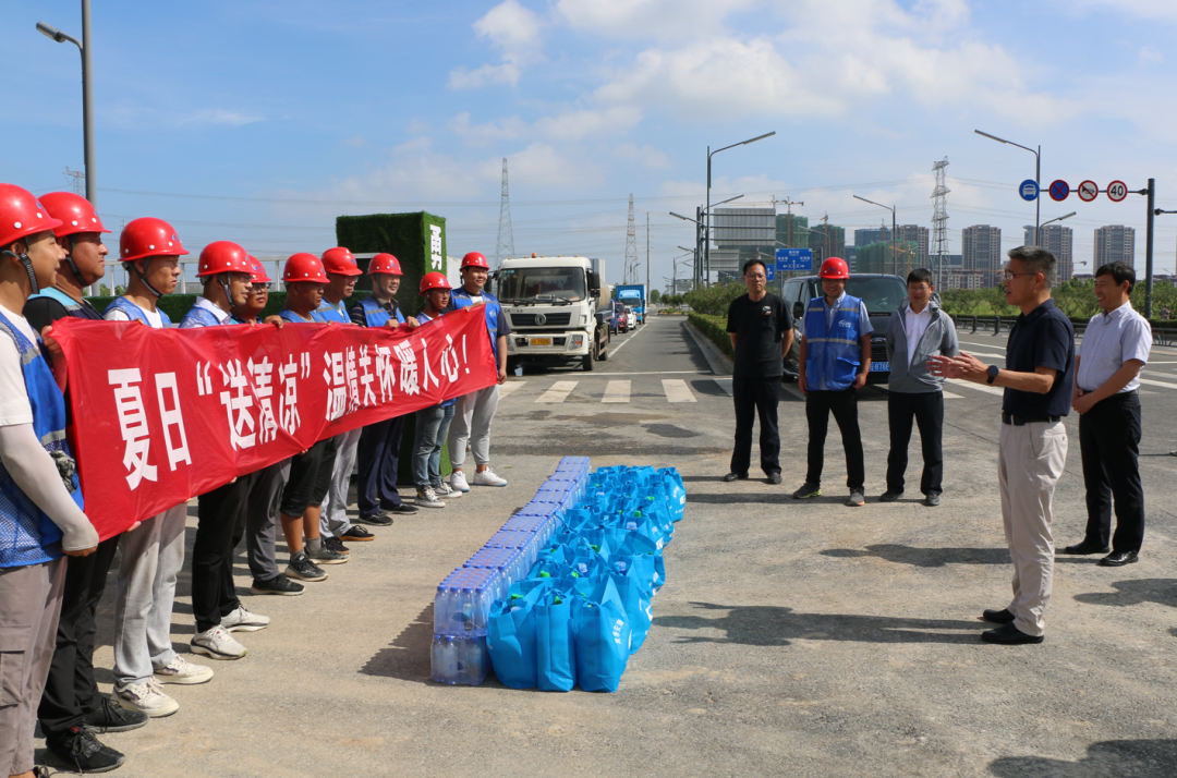 為切實做好夏季防暑降溫工作,保障職工安康權益,近日,集團開展“夏季送清涼”活動,集團黨委書記、董事長仲偉濤,集團總經理孫中華分別帶隊深入一線場站、班組、工地走訪慰問在高溫天氣作業(yè)的一線職工,為他們送去洗漱套裝、礦泉水、人丹、風油精等物品。集團黨委副書記、工會主席陳金師陪同慰問。