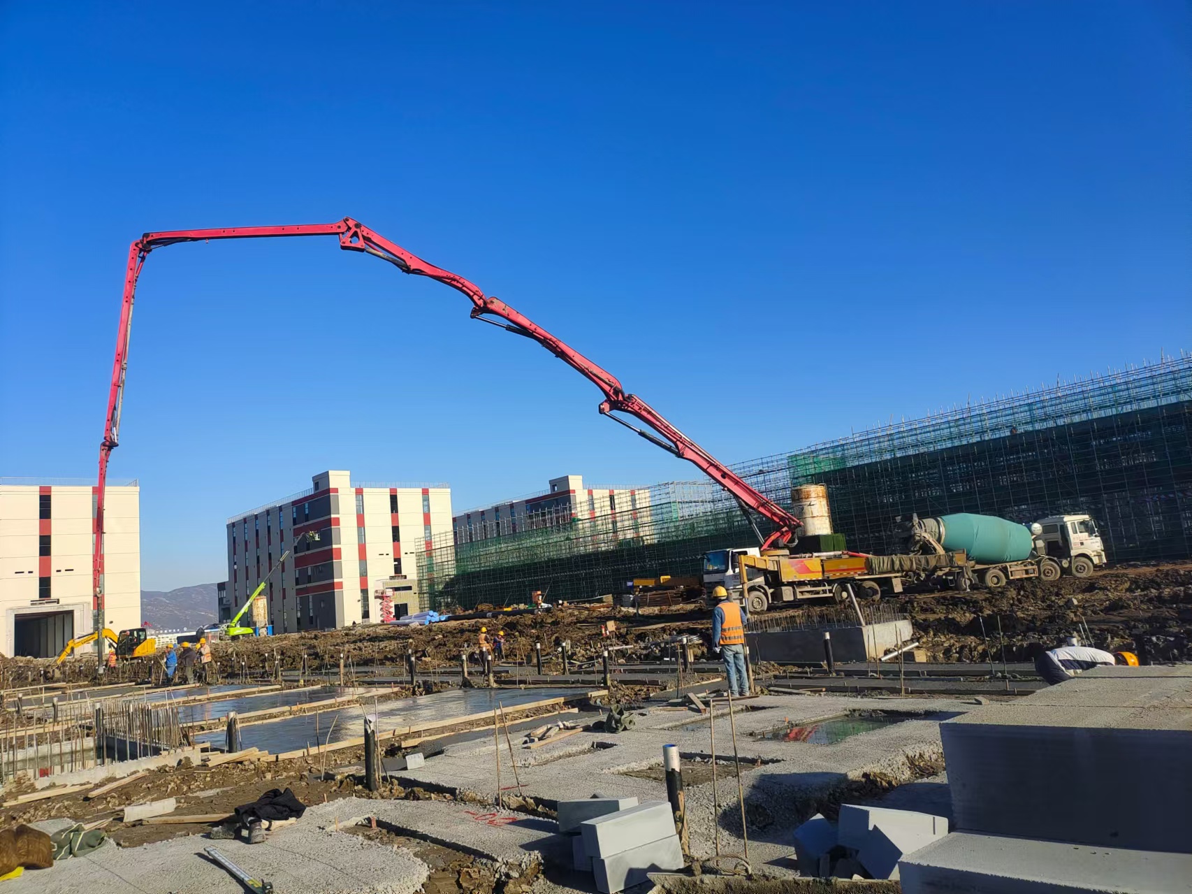 此次混凝土基礎(chǔ)墊層澆筑施工, 是本項目單項工程紡絲車間的關(guān)鍵部分之一,基礎(chǔ)墊層作為建筑物底層的重要組成部分,其質(zhì)量也直接影響到整個結(jié)構(gòu)的安全與穩(wěn)定。為確保本次澆筑順利完成,生產(chǎn)過程中, 基地商混站全體員工齊心協(xié)力、緊密配合,項目團(tuán)隊不斷優(yōu)化生產(chǎn)方案,落實材料保供,強(qiáng)抓文明生產(chǎn),從原料篩選到攪拌出料,每一個環(huán)節(jié)都嚴(yán)格把控,以保障混凝土的高性能和穩(wěn)定性。同時,積極與施工單位協(xié)調(diào), 成功克服現(xiàn)場泵車架設(shè)困難、場內(nèi)道路通行受限等問題,如期完成本次混凝土澆筑任務(wù),為項目后續(xù)施工打下良好基礎(chǔ)。