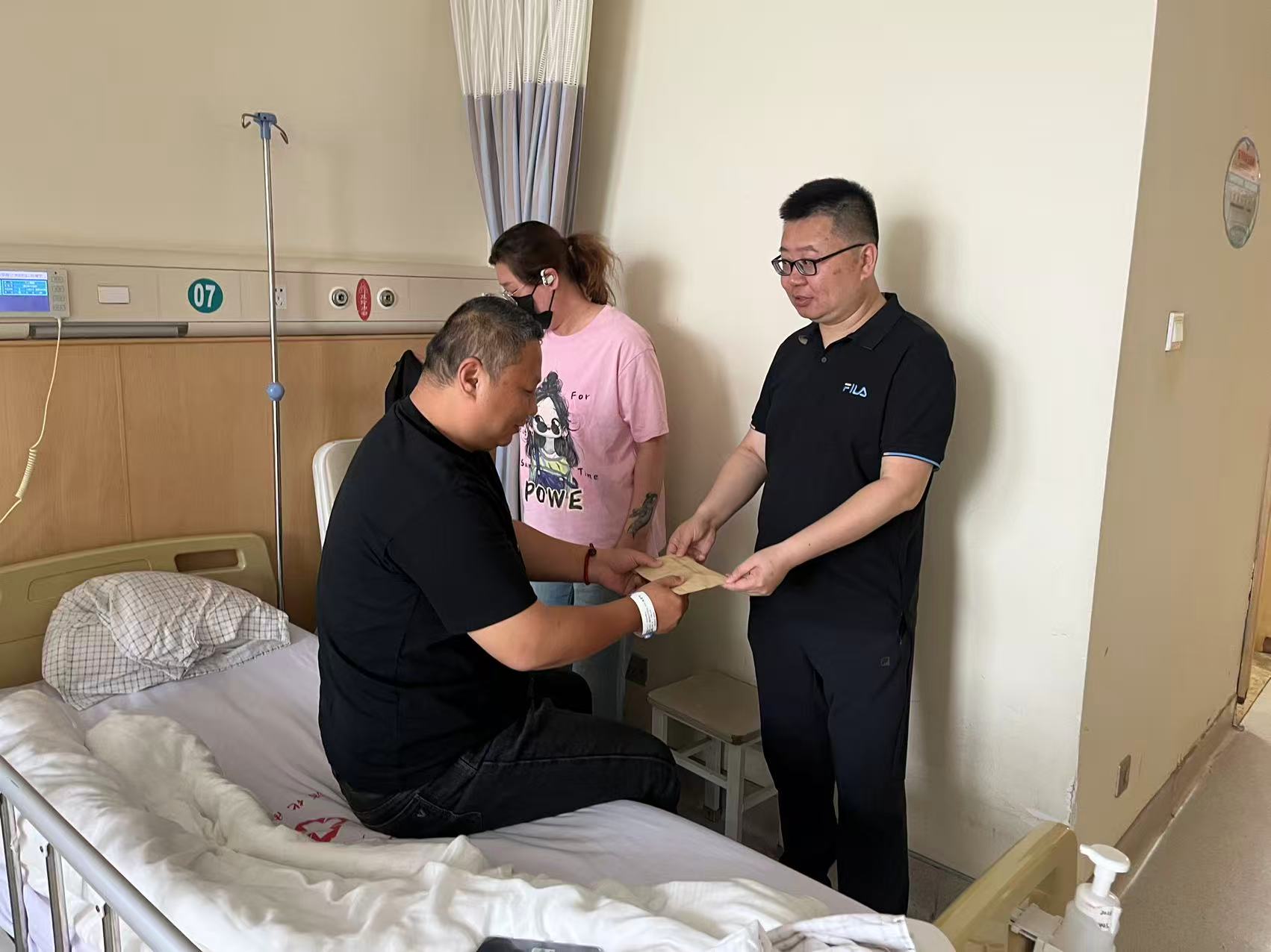 工會一行人來到朱愛華的病房,首先向他傳達(dá)了公司領(lǐng)導(dǎo)以及全體員工對他的牽掛與關(guān)愛。大家關(guān)切地詢問朱愛華目前的身體狀況以及治療的具體進(jìn)展,仔細(xì)傾聽他的需求和想法。工會代表鼓勵(lì)朱愛華要保持積極樂觀向上的心態(tài),堅(jiān)定戰(zhàn)勝病魔的信心,爭取早日康復(fù)。